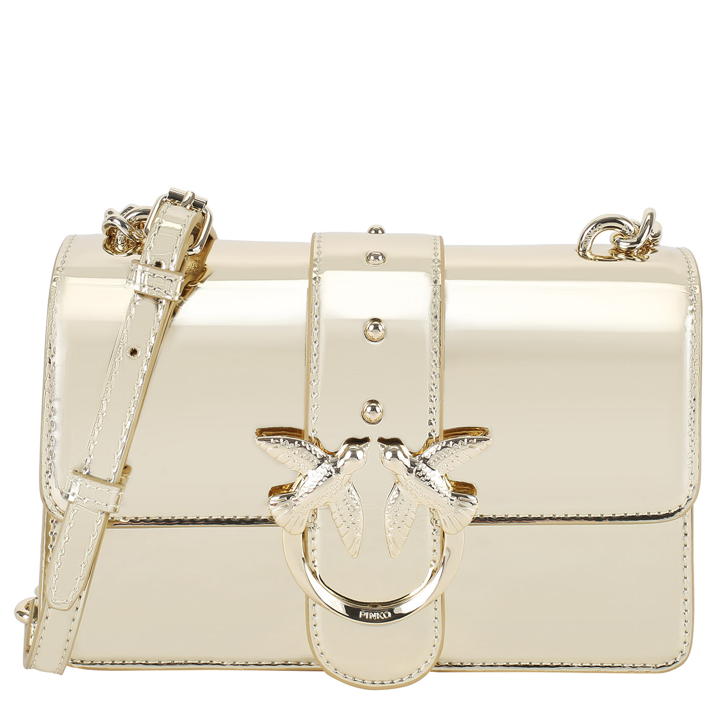 Сумка через плечо Pinko Love One 100059-A1JD/ZZLB_gold - 2000558543217 золотой натуральная кожа 21 x 13 x 6,5 Цена 33824 руб. купить в интернет-магазине PanChemodan.ru в Орле